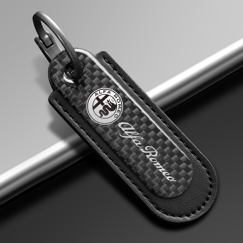 Leather Keychain For Alfa Romeo Carbon Fiber Black Leather Keychain.